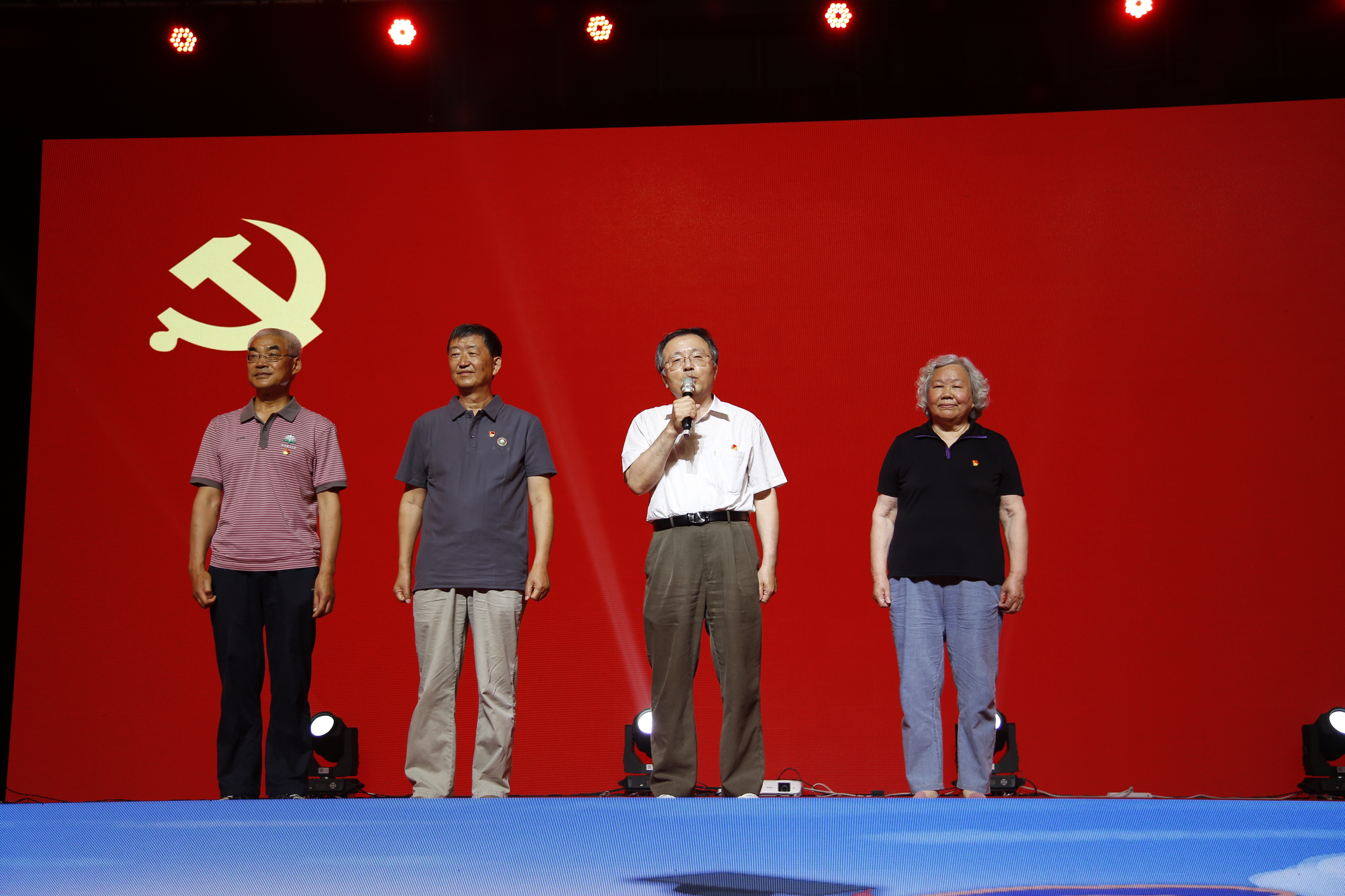2021年是中国共产党成立100周年,晚会“初心与使命”环节,机械学院四位总党龄超过一百岁的老党员同志和大家分享了他们的入党初心和心路历程,新入党党员代表们也分别谈了他们的感想和体悟,在老党员为新党员佩戴党徽后,由李晓雷老师带领新党员同志们在党旗下郑重宣誓。
