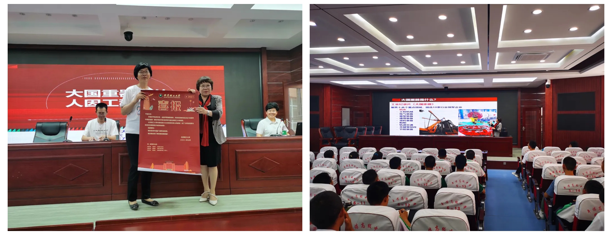 在内蒙,全国模范教师薛庆教授、领航人仇天阳老师代表内蒙招生工作组为赤峰元宝山区平庄煤业高级中学送去喜报。薛庆教授进行了题为“大国重器中的人因工程技术”的专题讲座,她强调重大科技创新成果是国之重器、国之利器,必须牢牢掌握在中国人自己手上,必须依靠自力更生、自主创新;勉励学生为科技强国建设做出自己的努力。