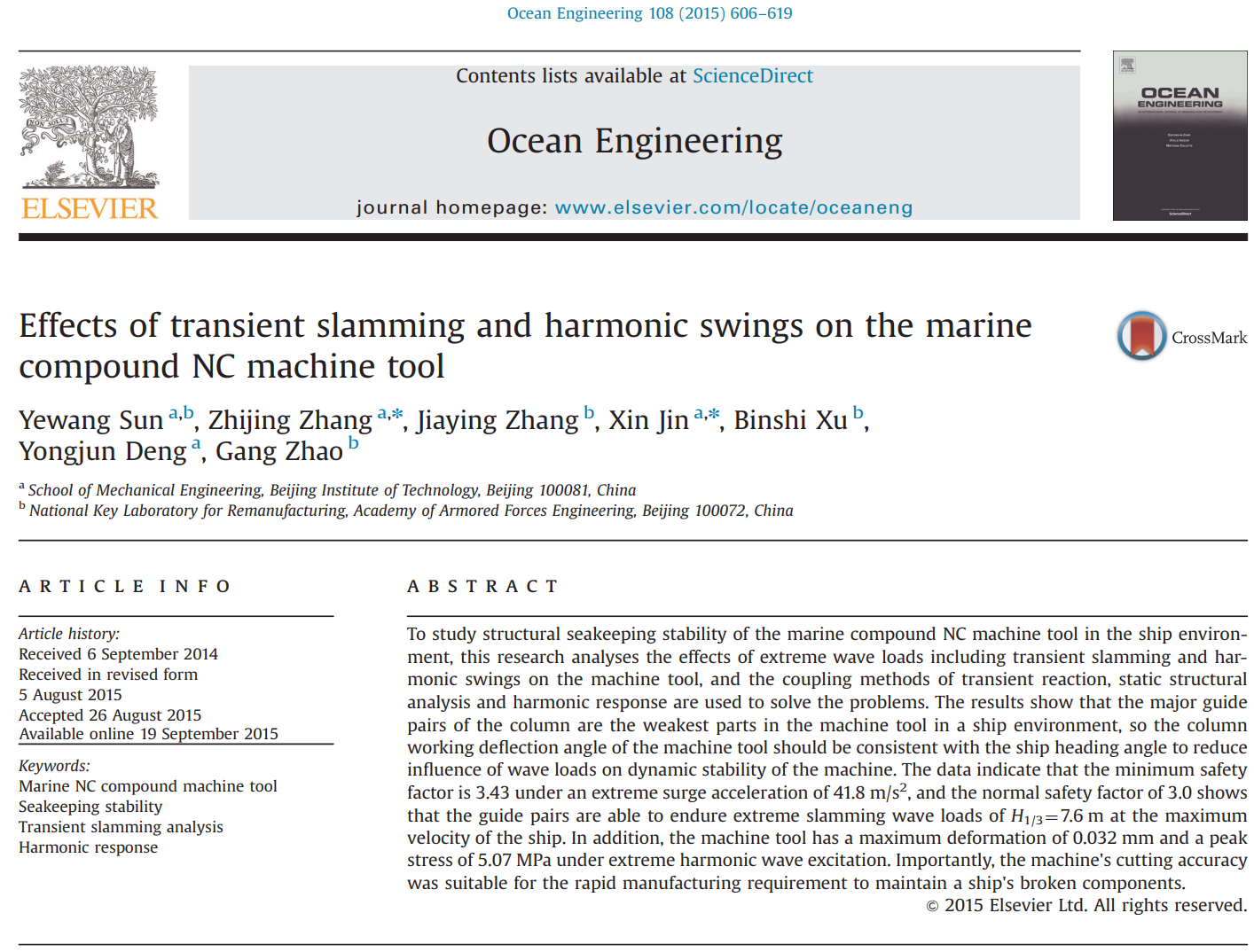 由我校色情导航 机械制造系张之敬教授、金鑫教授团队与装甲兵工程学院徐滨士院士团队合作研发的万能车铣/铣车数控复合加工机床CXWK-Ⅲ于2019年成功装备我国某大型海上平台3.75万吨级维修保障船上。2021年6月28日第2台上船机床在山东滕州顺利通过有关方指定代表验收,预计8月份正式上船(见图1)。该新型机床是在我校多项国家发明专利基础上,完全自主研发、全国产化的创新产品,为我国大型海上平台维修保障用首台上船的万能车铣复合数控加工设备。该项技术为我国海上和陆地野外快速维修保障技术的提升提供了强有力的技术支持。