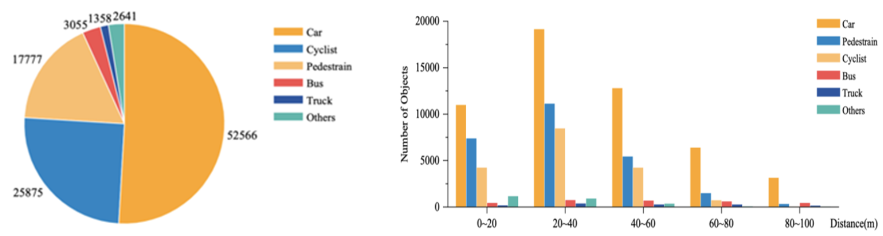 图2. 多类别目标数量统计和目标距离分布统计