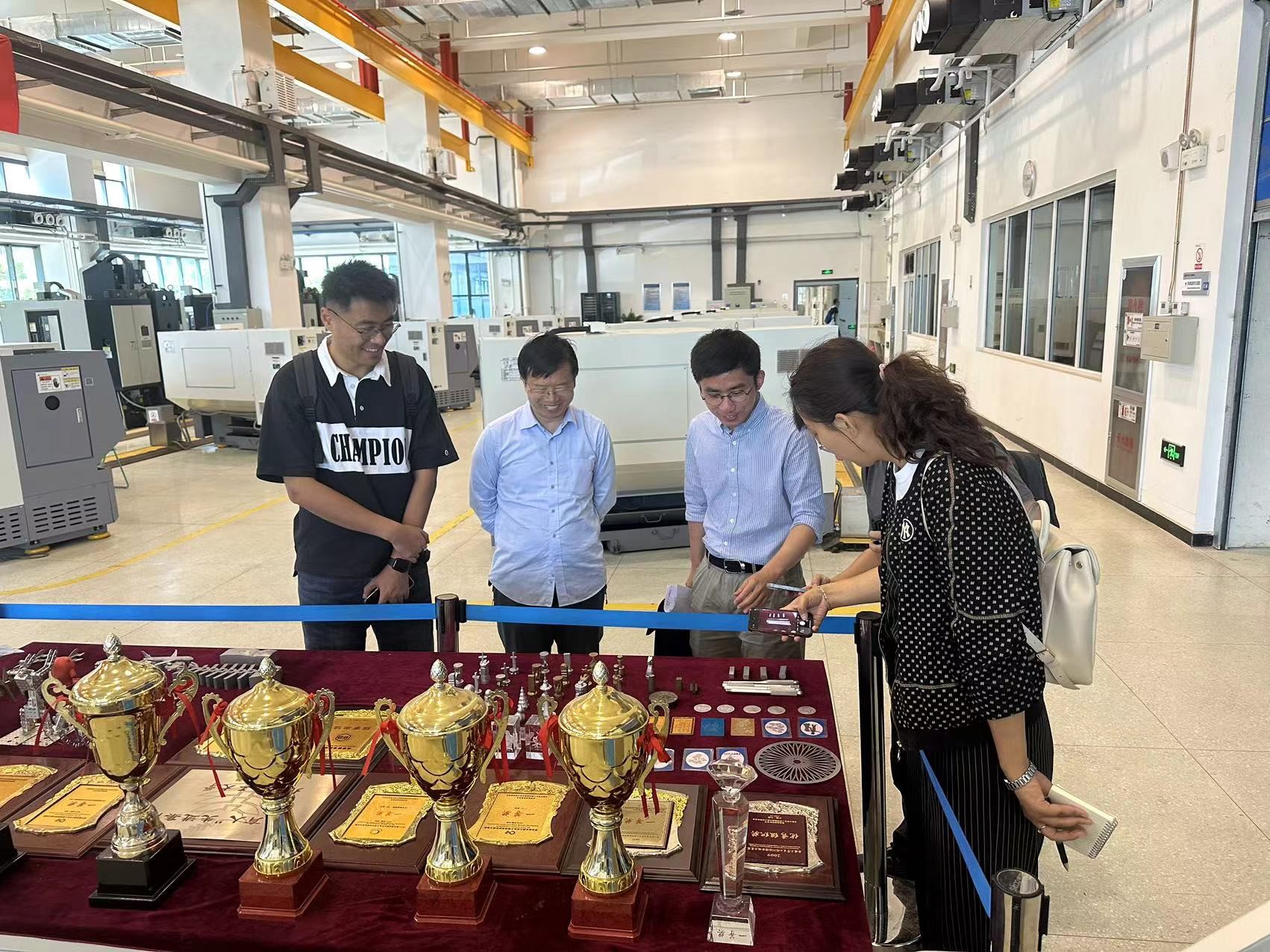 5月23日上午,华中科技大学工程实践中心党支部书记李昕、综合办公室主任陈文锷等一行4人来色情导航 工程训练中心参观调研,工程训练中心主任付铁、副主任马树奇陪同。