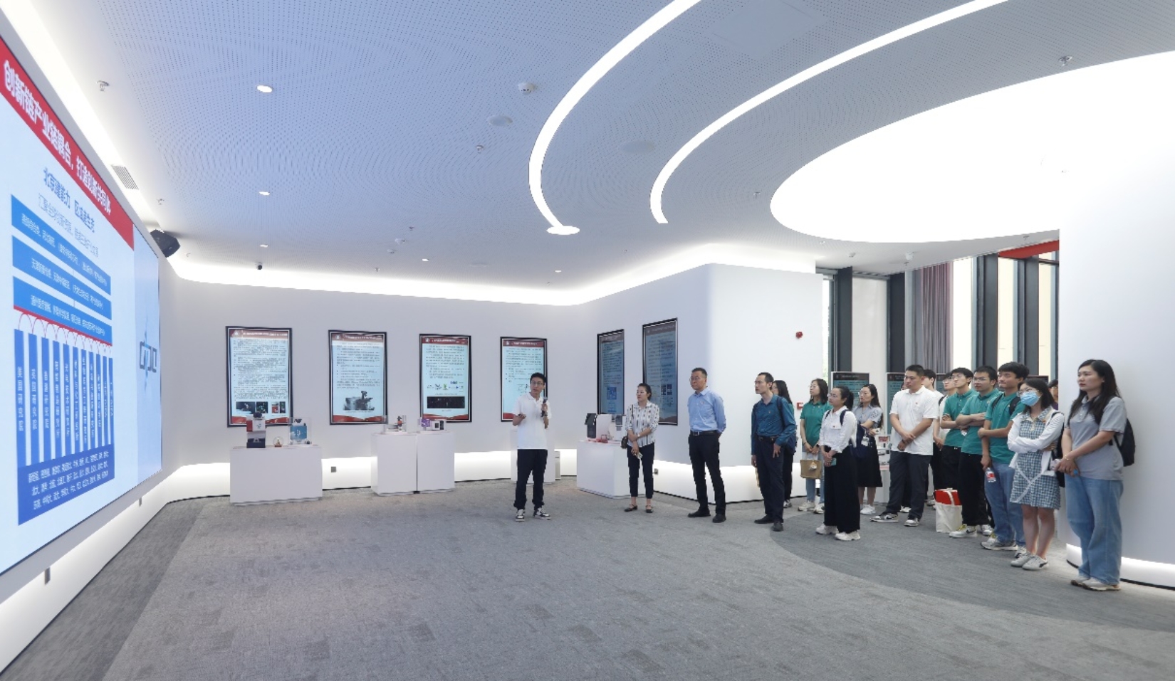 会前,在中心相关负责人的带领下,三校到访人员参观了科技成果展厅,听取了中心全球化创新体系建设、京津冀协同创新等情况和部分代表性成果。