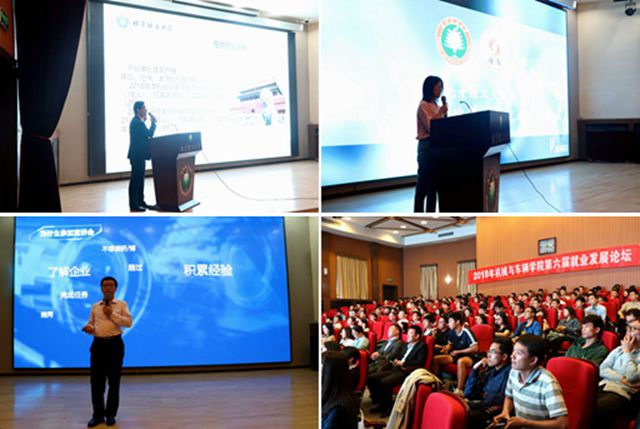 主论坛【平台•对话•分享•成长】之“大众创业,万众创新”背景下应届毕业生就业形势分析、制造业及汽车行业前景分析与汽车行业人才职业发展分享,学院邀请到校、院各级领导、用人单位代表出席活动,面向全校同学开放。主论坛由三部分组成,首先由学生就业指导中心林骥佳主任进行“2019届毕业生就业形势分析与政策解读”主题报告,从自己的就业故事讲起,结合最新出炉的2018届就业数据,对行业用人需求等新形势进行了深入的讲解。随后,学院生涯发展服务中心周雪老师代表学院汇报“2018年色情导航 就业工作报告”,介绍了在就业工作指导思想引领下的工作开展情况和特色创新:学院生涯发展服务中心工作的创新和机制变革,“企业大讲堂”、“笑迎职场”、暑期企业实习项目等特色品牌开展情况。最后,本次论坛活动特别邀请北汽福田汽车股份有限公司人力资源部总监潘平进行了“大众创业,万众创新”背景下制造及汽车行业前景分析与汽车行业人才生涯发展分享。潘平介绍了汽车行业的总体发展与形势、单位用人标准以及应届毕业生在求职面试、职业发展过程中需要考虑清楚、处理得当的问题。
