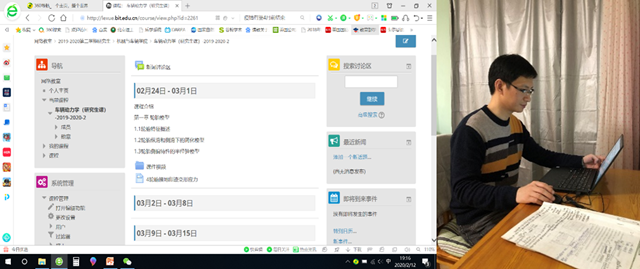 在特种车辆研究所,疫情期间项昌乐院士多次对家住湖北和经停湖北的同学身体状况和家庭情况进行了解和关注。研究生在家期间都有自己的计划,并开展课题研究,各课题方向定期开展视频会议,了解各位学生的工作进展和课题研究中的困难,保障科研任务和学生培养的有序推进,努力抢时间争取国家重要科研项目不受疫情影响进度。课题组教师精心准备网课,潜心编写教材,都在默默有序的以一名人民教师的身份进行着抗“疫”。