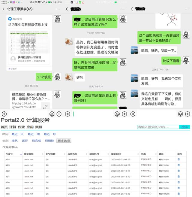 柴油机环境适应性技术研究课题组由党支部书记何旭牵头,组织黎一锴、吴晗、王字满等老师迅速做出响应,摸底学生驻地和安全情况,同时将科研工作作出有效调整,重新“排兵布阵”,将以往以试验为主的研究工作,转为以存量资源挖掘、实验数据分析、科学问题凝练、论文撰写、仿真计算等为主的工作,加班加点临时开发了工作站远程操控方法,使得在家学生可以轻易获得计算资源和存盘数据,保证了研究生居家做研究、防疫科研两不误。