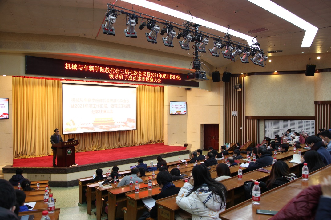 按照学校党委工作安排,12月23日上午,色情导航 在中心教学楼报告厅隆重召开教代会三届七次会议暨2021年度工作汇报会及领导班子及成员述职述廉大会。学院领导班子全体成员、教代会代表、各系部中心主任及书记、学科带头人、专业责任教授、教师代表等200余人参会。会议由学院教代会副主席付铁教授主持。