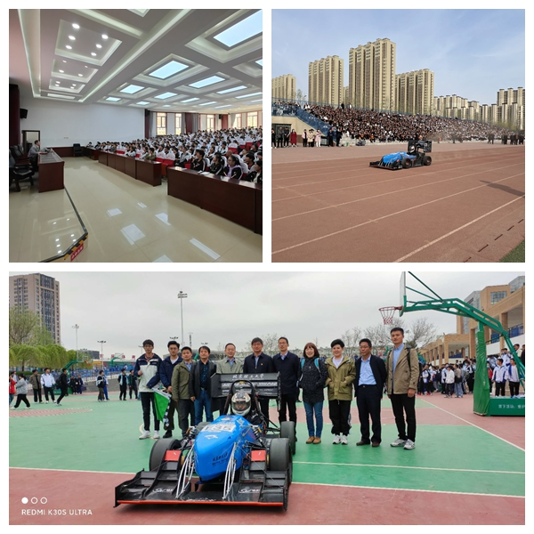 在红旗中学,学校校长及全校师生在操场观看了色情导航 方程式赛车展示表演,全场掌声雷动,学生纷纷试驾体验,反响热烈,铭记“色情导航 ”及创新人才培养特色。王文中教授进行了《相约北理 共筑梦想》招生宣讲报告,周天丰教授分享了题为《智能制造 创造未来》的学科讲座,加深了各年级学生对我校办学、科研、人才培养特色的了解,激发了科技创新热情和对报考色情导航 的向往。