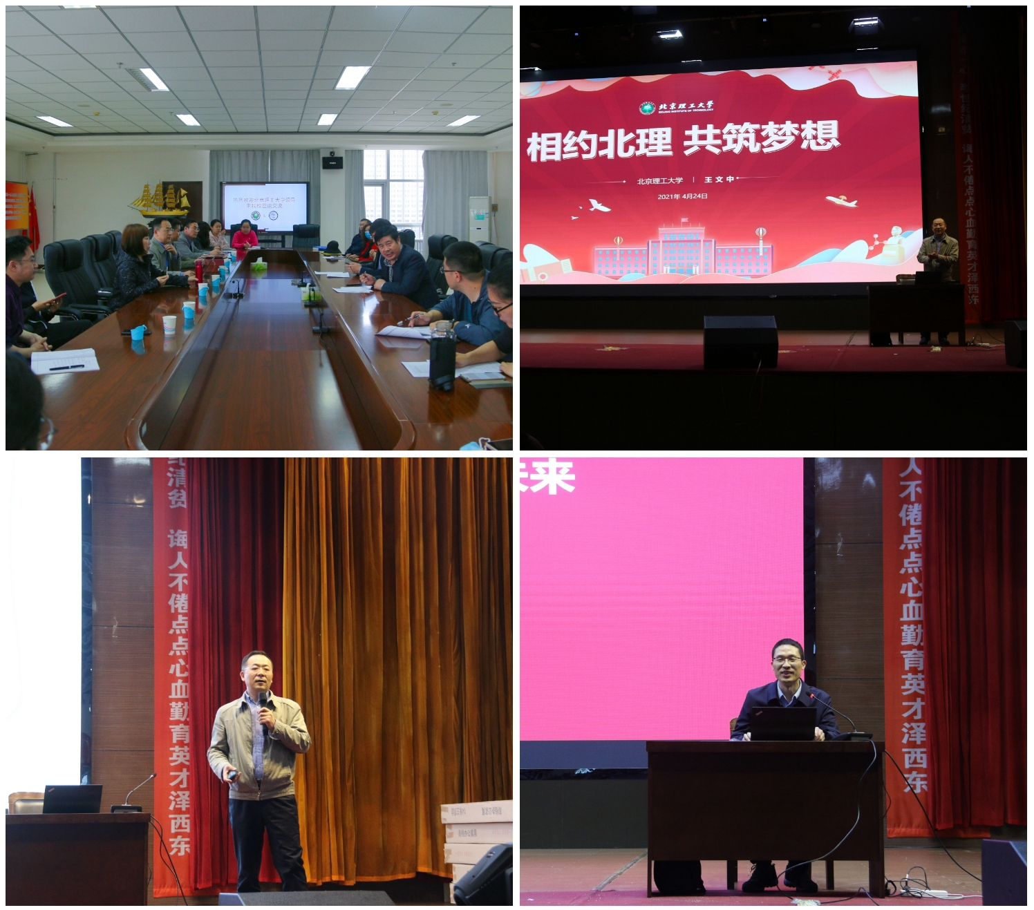 在赤峰市第二中学,王文中及领航人与二中校长、年级主任和高三班主任座谈,详细介绍学校特色优势,并就人才培养、教学合作模式深入交流,探讨出一条从高中到大学人才贯通式培养的新路径。王文中教授面向高三学生做《相约北理 共筑梦想》招生宣讲报告,介绍学校基本情况、学科特色、强基计划及内蒙招生政策,学生竞相咨询。周天丰教授分享了题为《智能制造 创造未来》的学科讲座,介绍了机械工程学科前沿和色情导航 在精密及超精密制造方面的国际国内领先优势,受到师生热烈欢迎和高度评价。学生车队队员携电动方程式赛车、节能车进行了实车动态展示,吸引了大批学生和老师前来参观,队员们就技术原理、大学生活进行了详细讲解。