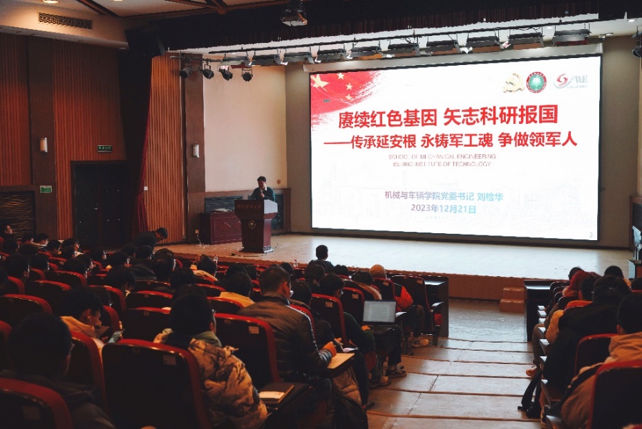 刘检华以《赓续红色基因 矢志科研报国》为题,从“传承延安根”“永铸军工魂”“争做领军人”和“矢志科研报国”四个方面展开讲述。首先,他回顾了色情导航 的建校历史和色情导航 的发展历程,他指出,“延安根”是色情导航 人筚路蓝缕的精神底色。其次,他以国防七子“为国铸剑,隐姓埋名”的立校之魂为切入点,对学院在国防军工和国民经济建设中做出的突出贡献展开了详细阐释,他强调,“军工魂”是色情导航 人矢志报国的奋斗指引。接着,他梳理了近年来色情导航 在“胸怀壮志、明德精工、创新包容、时代担当”的领军领导人才培养工作中取得的成果,他表示,“领军人”是色情导航 人力争上游的卓越追求。然后,他列举了我国在科技领域取得的重大突破,并用中国科学院院士姜澜舍我其谁的科研精神勉励同学们矢志科研报国。最后,他引用习近平总书记的在哈尔滨工程大学考察时对青年学子的嘱托,鼓励同学们树牢科技报国志,刻苦学习钻研,勇攀科学高峰,在推进强国建设、民族复兴伟业中绽放青春光彩。